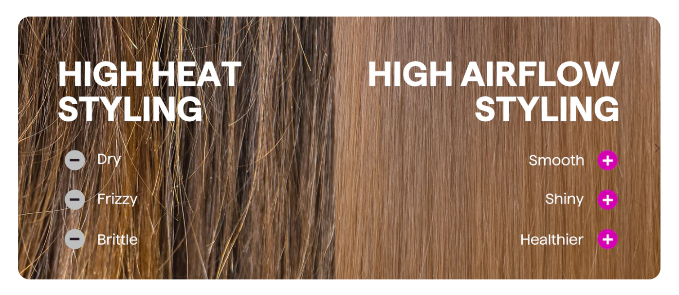 High-speed airflow dries hair in minutes